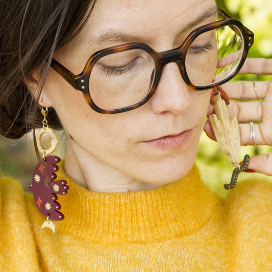 Oiseaux, lunes et serpents - Boucles d'oreilles dépareillée