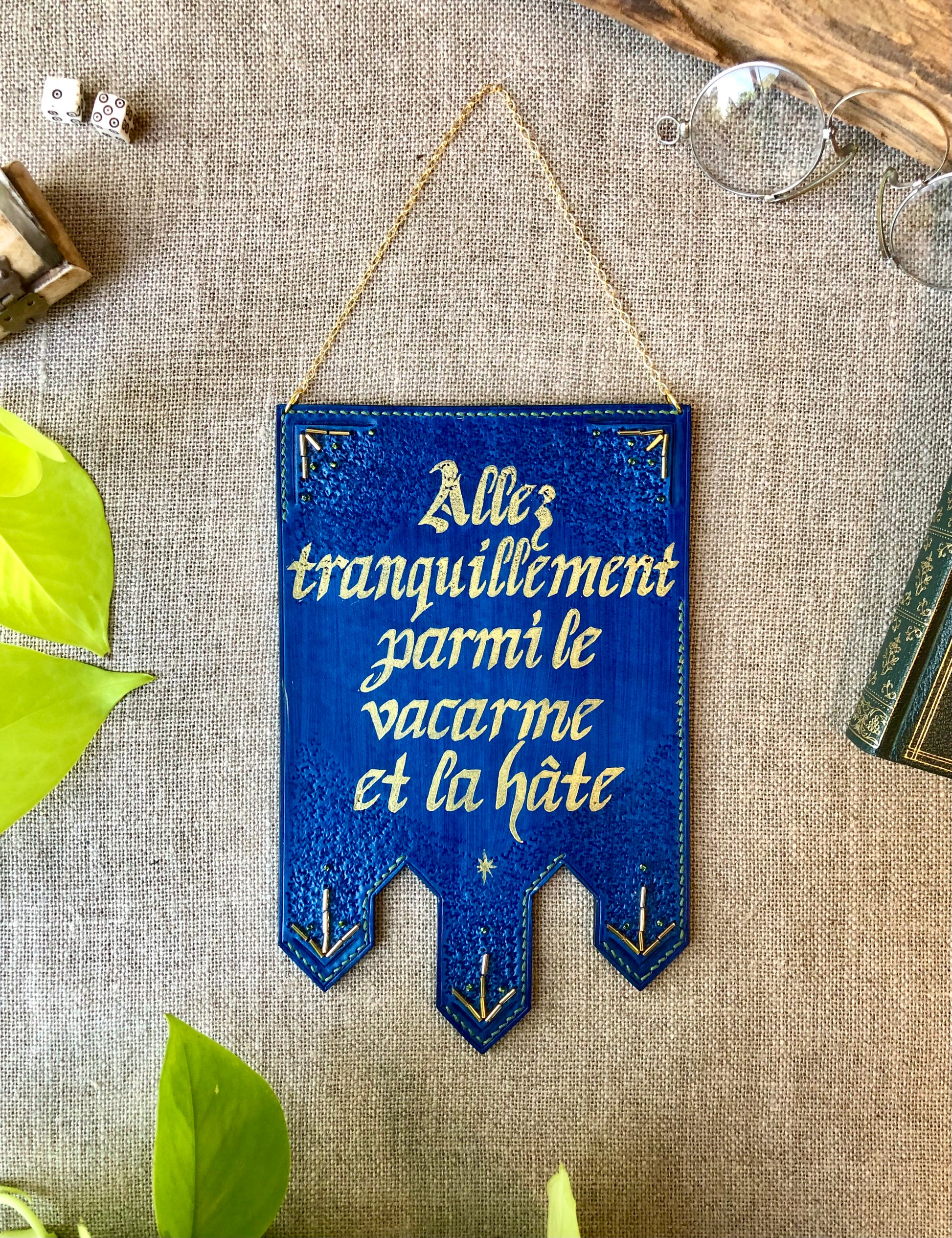 Attention : la phrase est imprimée selon le processus de linogravure : des différences d'impression seront donc présentes sur chaque pièce. Toutes les bannières sont uniques !