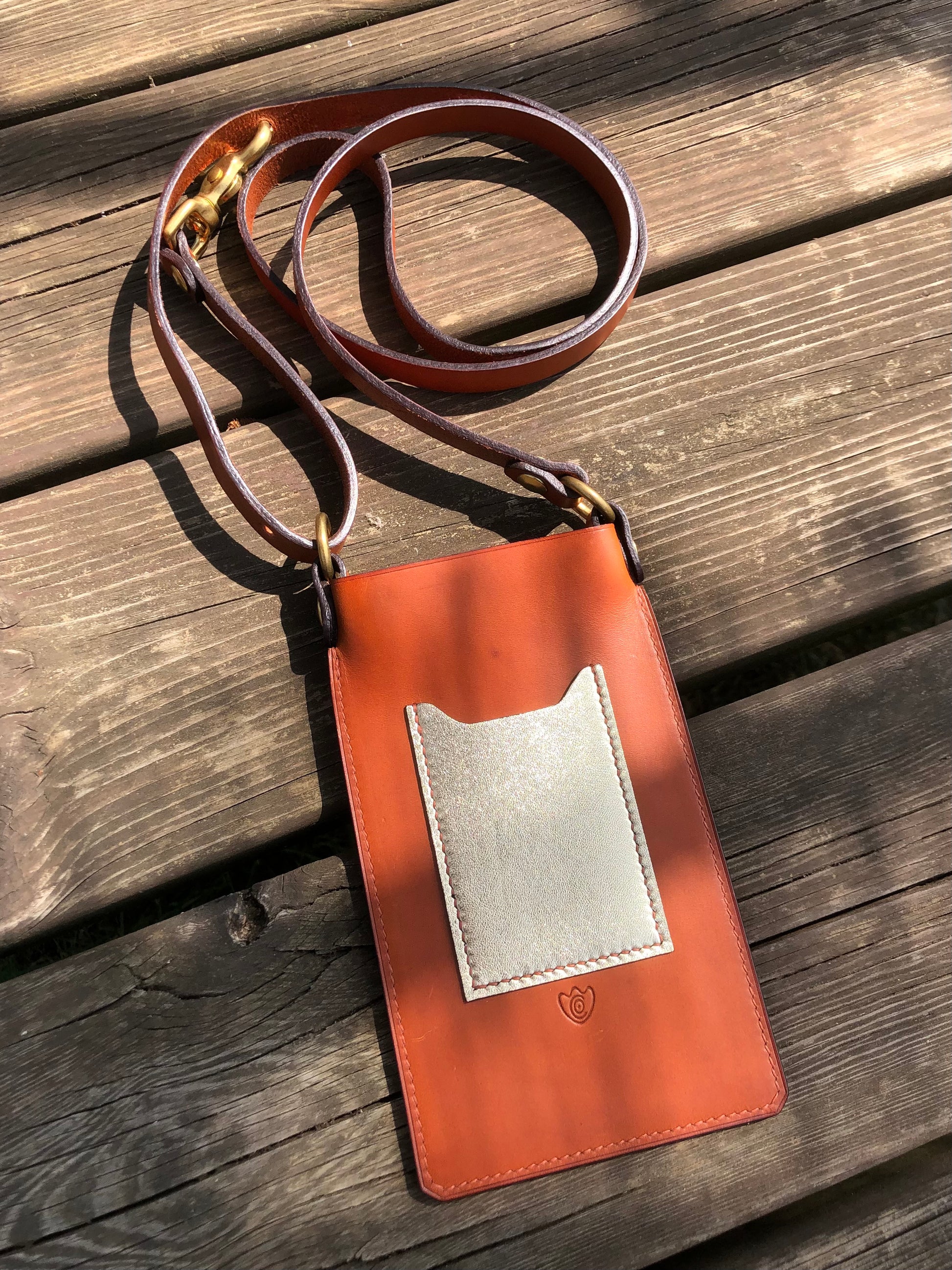 Conçu pour les téléphones de dimensions max 16 x 8 cm. Il ne possède pas de système de fermeture car les deux cuirs sont suffisamment plaqués pour retenir le téléphone, même à l'envers. L'étui se moulera à la forme de votre appareil au fil du temps. Une visite vous permet de ranger votre carte de crédit ou de transport.