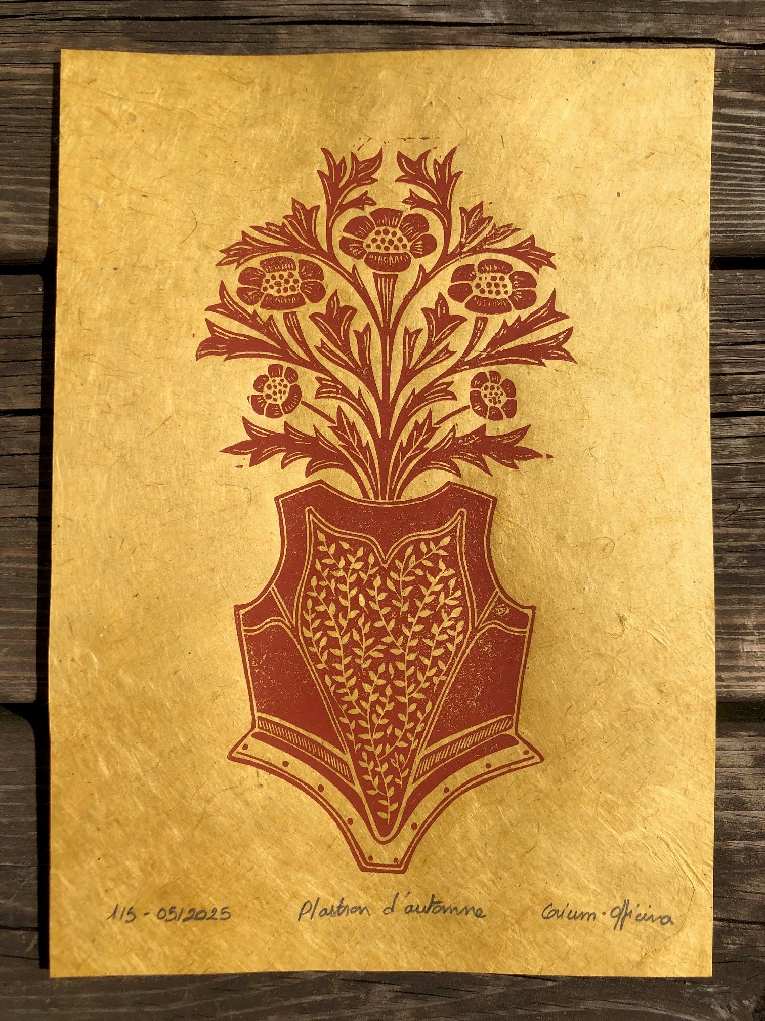 Deux tirages sont proposés : sur papier Japon ivoire encre framboise pour la série régulière ou papier Lokta pour les éditions saisonnières.