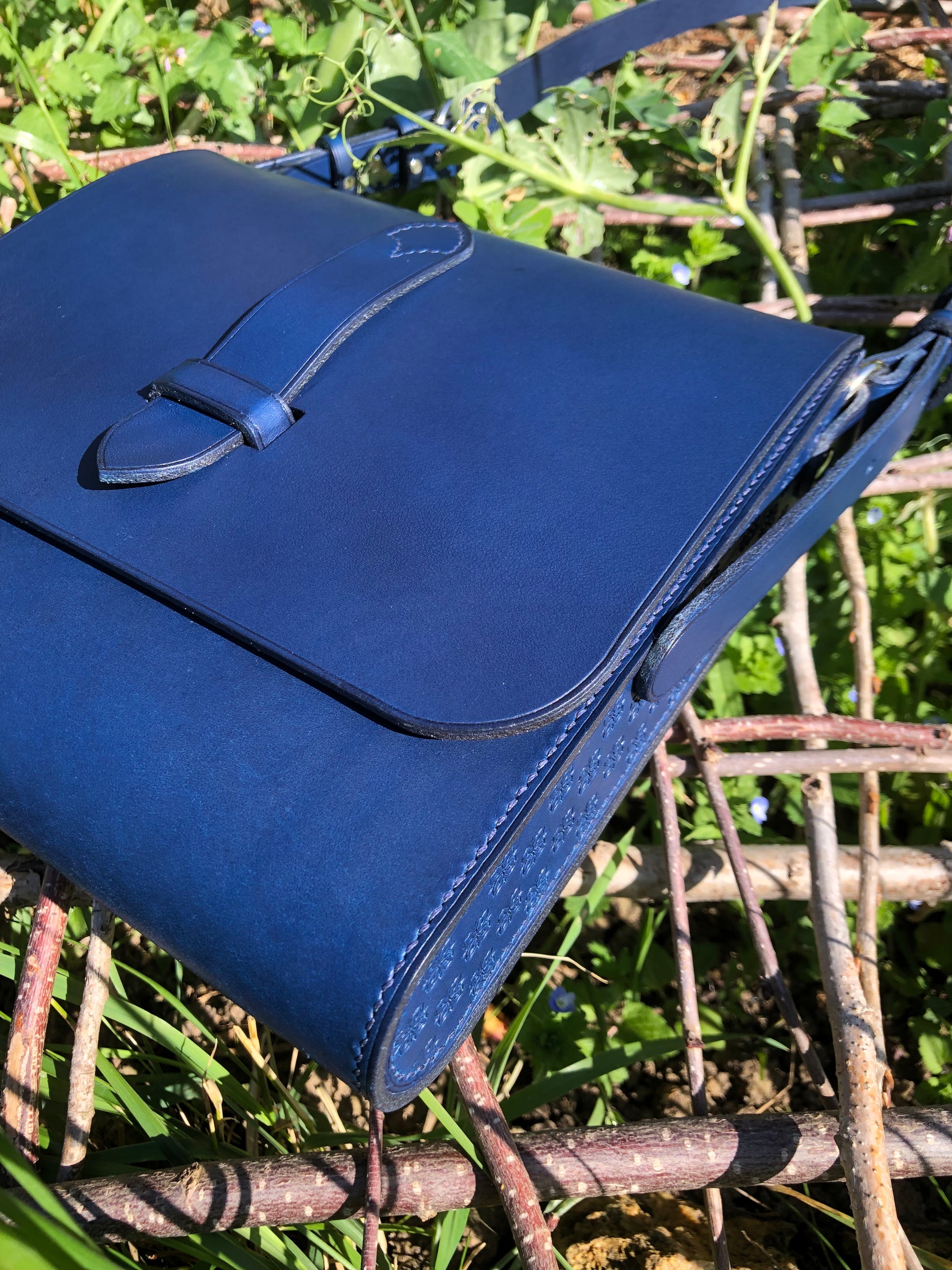 Le Messager est un sac de format presque carré composé d'un unique compartiment et d'une bandoulière réglable. Sa forme est sobre mais son originalité et son élégance se trouvent dans les motifs qui ornent les soufflets, la rondeur de son fond, le système de réglage de la bandoulière par boutons de col ainsi que l'assemblage par couture d'angle. Le sac se ferme facilement par une languette.