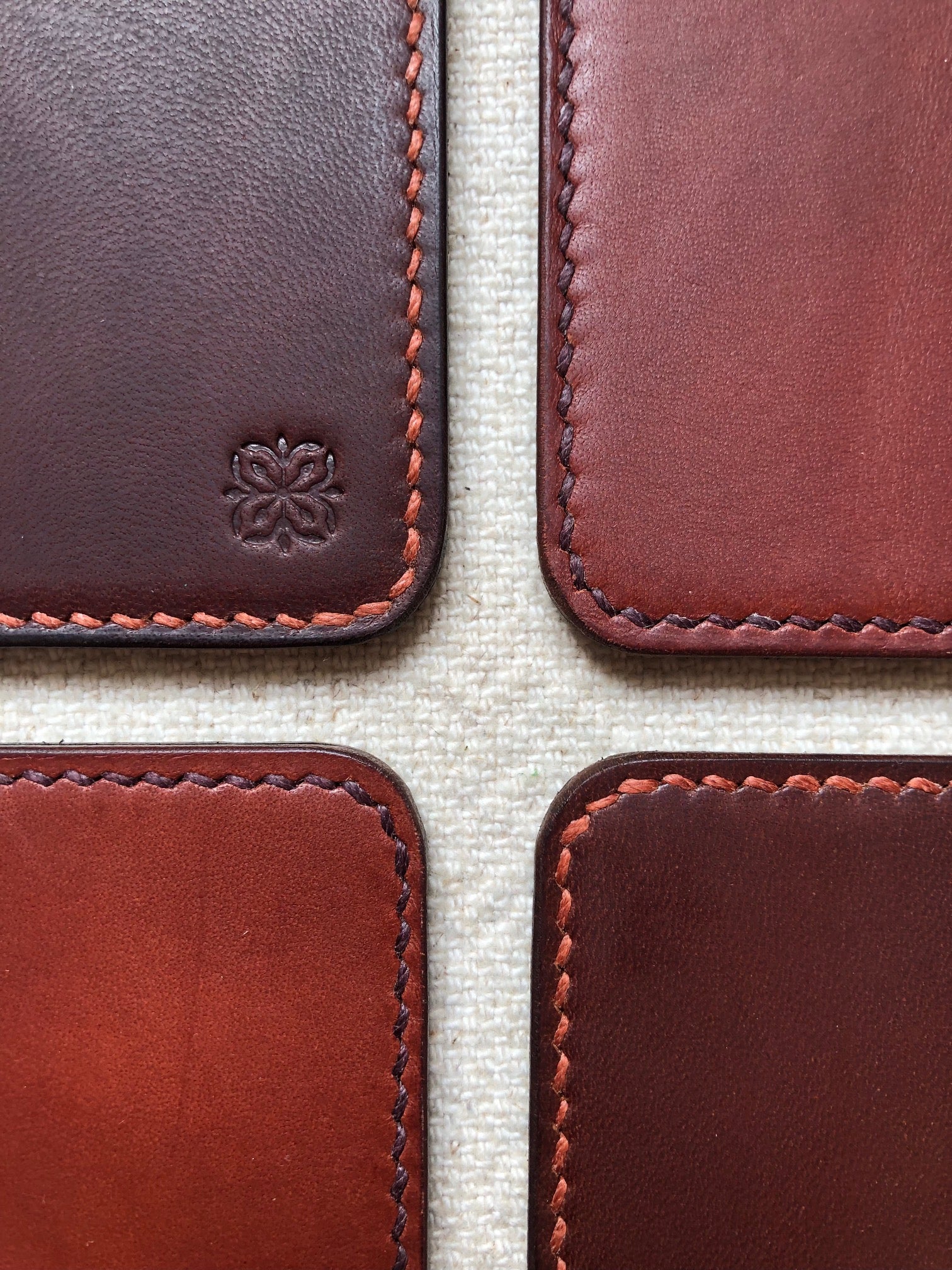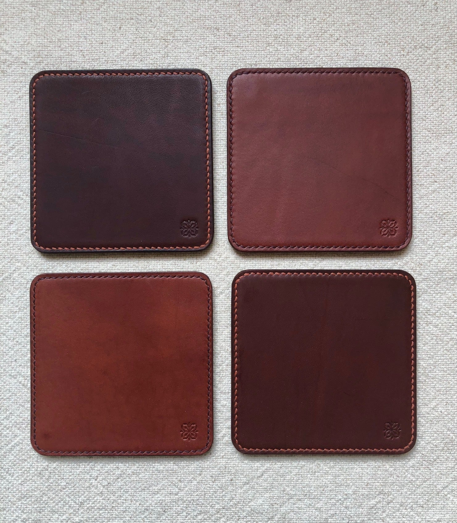 Lot de 4 sous-verres dépareillé (2 acajou et 2 papaya)